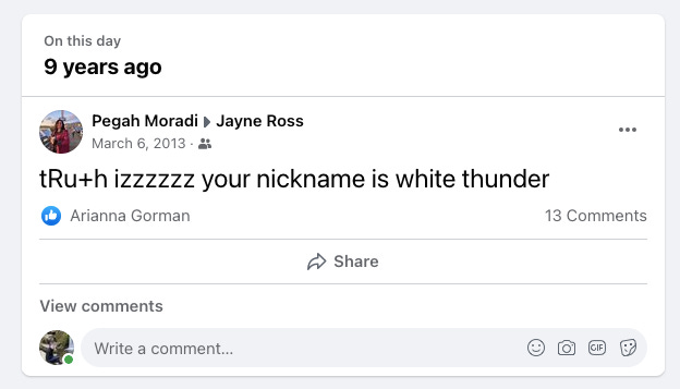 The other day, Pegah, aka my Substack Accountability Partner, sent me a few photos of us that I’m 90% sure were taken at an eighth-grade birthday party. We’re in someone’s basement, trying to make a human pyramid, mostly flailing around and laughing. I recognize most of the faces, though Pegah’s is the only one I’ve stayed in touch with. Our outfits and hairdos are PEAK middle-school—lots of headbands and scrunchies and frizz and Bermuda shorts (the grip that plaid Bermuda shorts had on me is unholy). But the first time in… well, maybe ever, the sight of myself and long-lost friends as preteens didn’t make me cringe. It made me laugh. And I just felt such tenderness for all of us. We were kind of losers, but maybe in the best way.